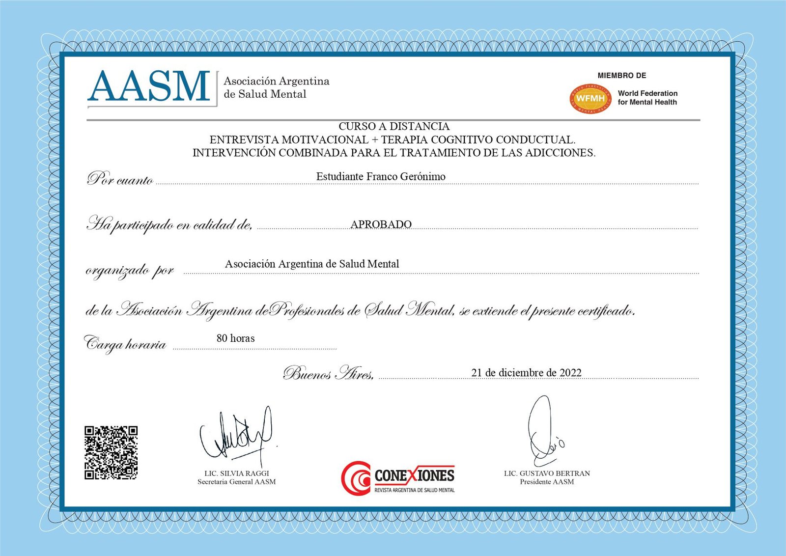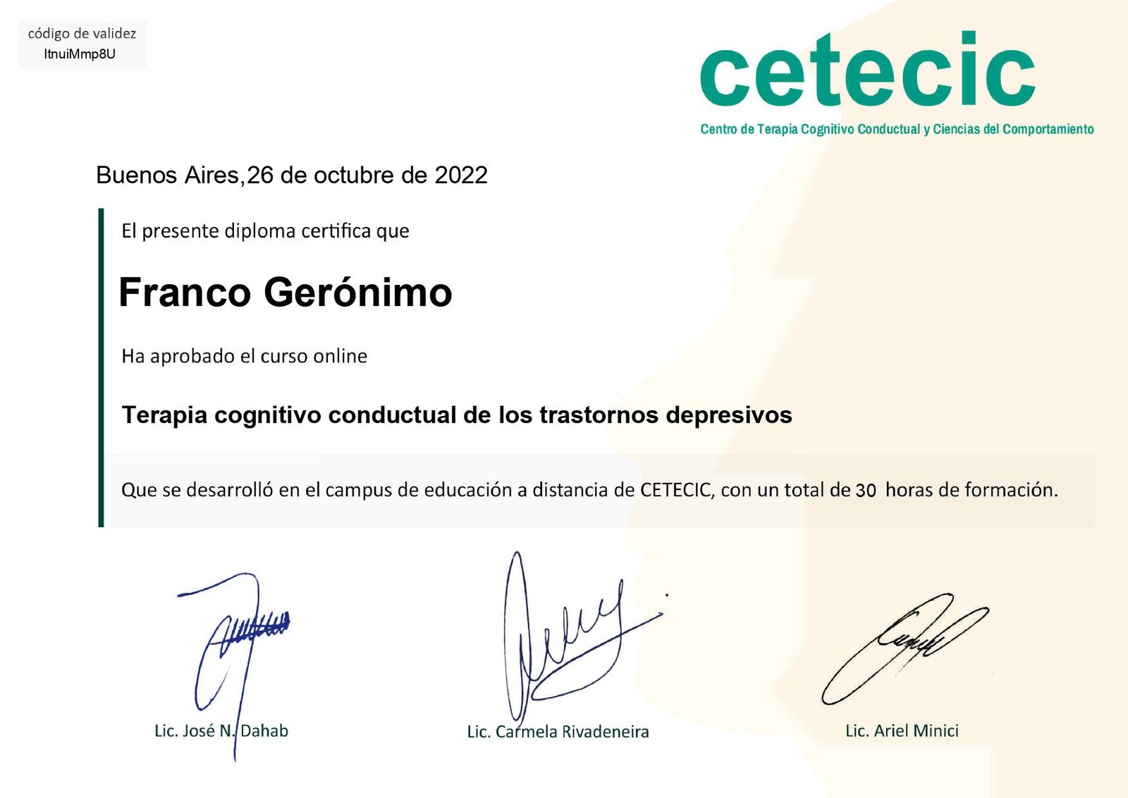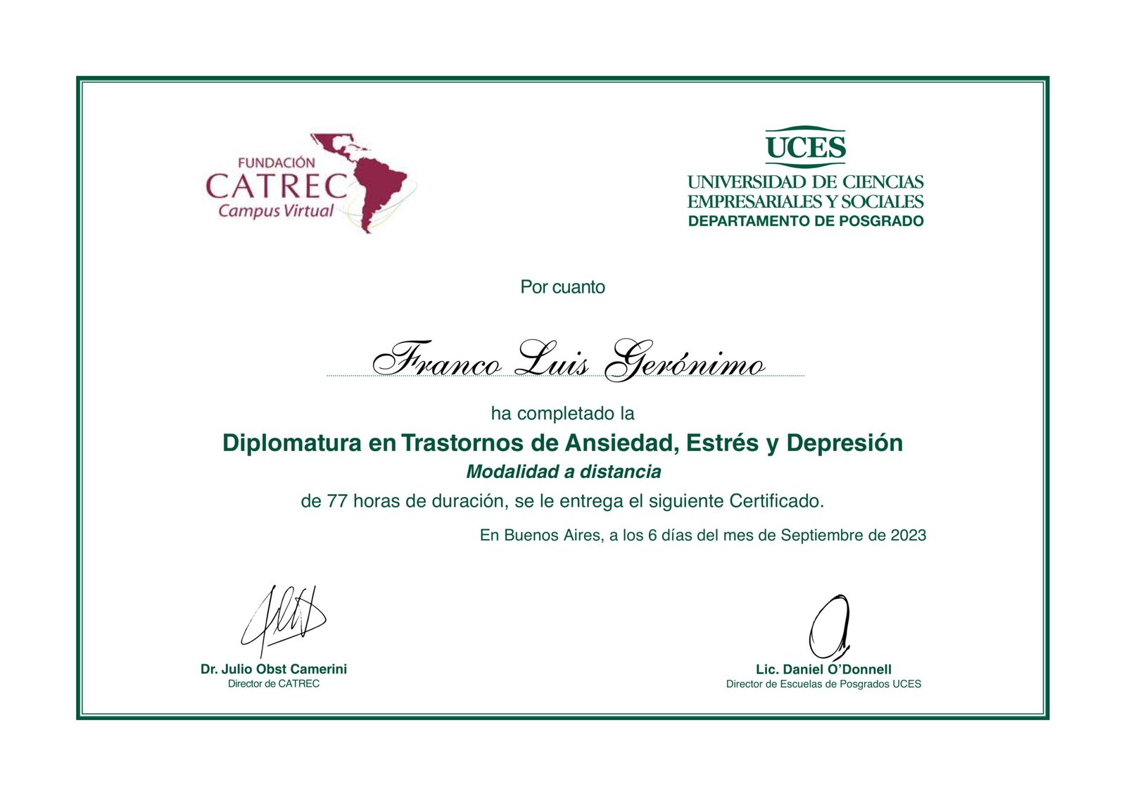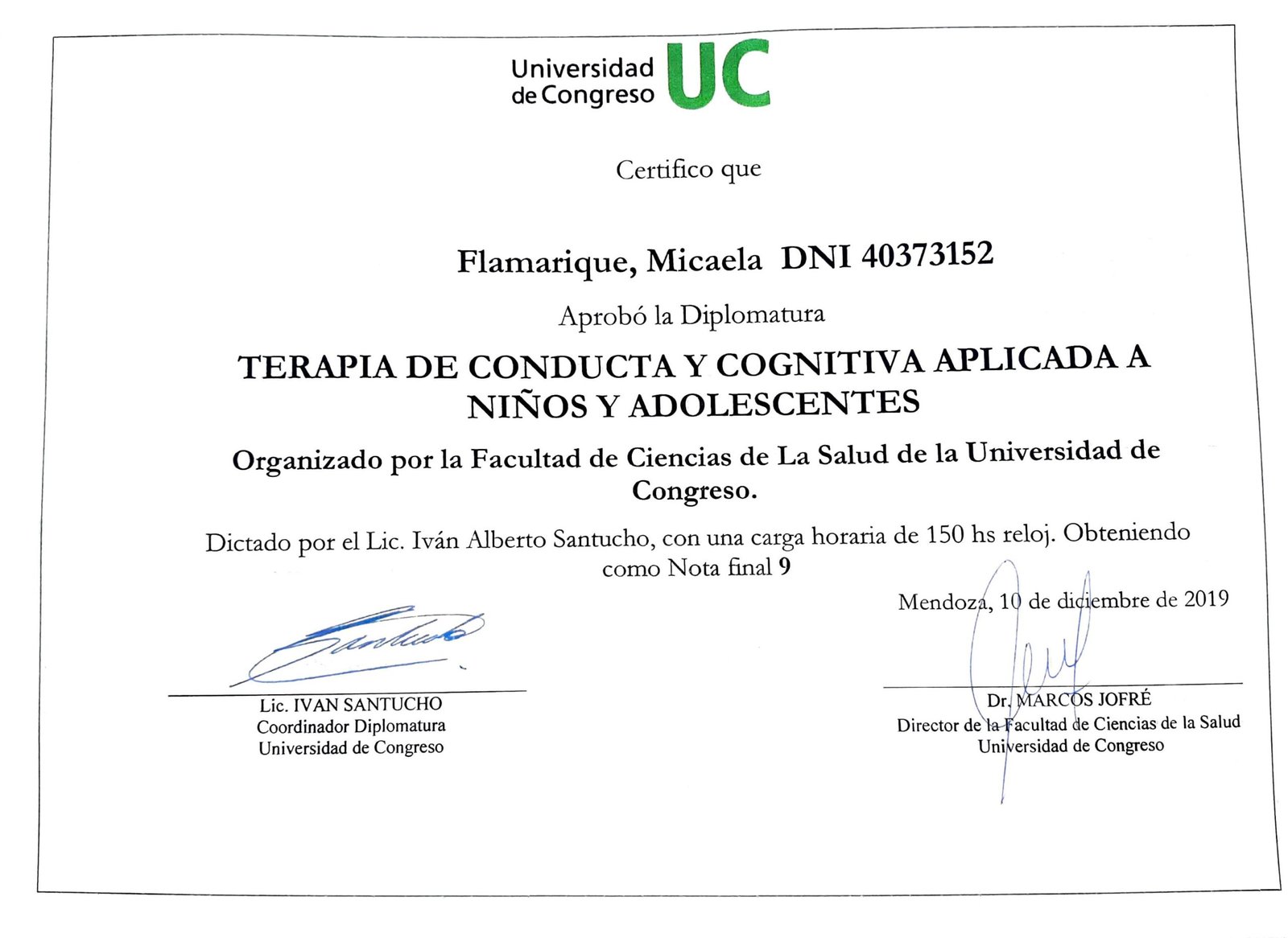 Especialista en Terapia Cognitivo Conductual para los Trastornos de Ansiedad | Matrícula: N° 5063